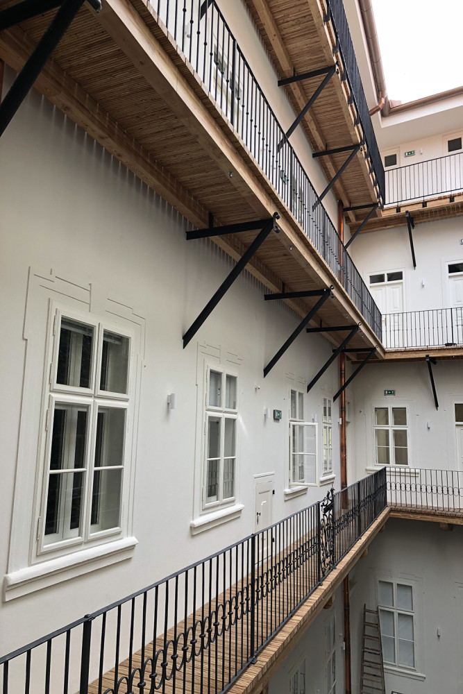 Výplně otvorů byly v maximální míře repasovány kvůli své historické hodnotě podle pokynů NPÚ. Prvky, které se nedaly zachránit, byly nahrazeny kopiemi a ostatní výplně provedeny novými prvky. Repasovány byly také zábradlí pavlačí. Nově byly provedeny rozvody elektroinstalací, zdravotechniky, plynu, vytápění a vzduchotechniky. Do dvorního prostoru byl nově vestaven výtah a vertikální zahrada.