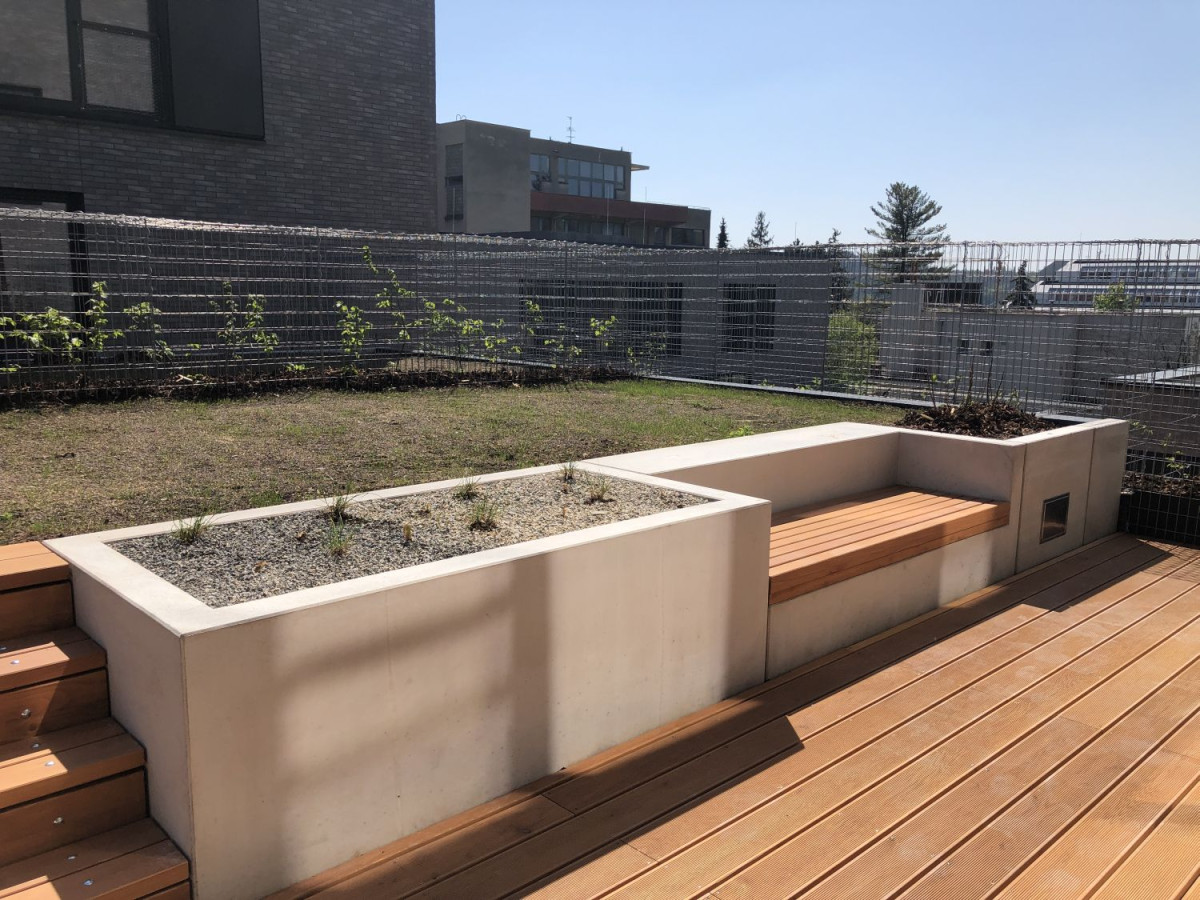Objekty byly navrženy jako kombinované zděné a ŽB stěnové konstrukce a ŽB stropy. Střechy jsou ploché s extenzivní zelení. Součástí projektu byly úpravy navazujících přípojek, komunikací a sadových úprav.