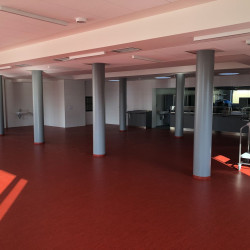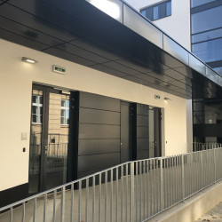 Antracitový obklad byl použit i na fasádě mezi vstupními dveřmi. Součástí stavby bylo i vybudování nové podzemní spojovací cesty mezi hlavní budovou gymnázia a rekonstruovaným objektem.