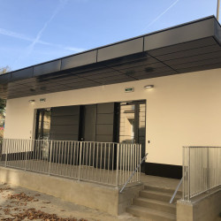 Přestože se jedná o utilitární objekt, byl řešen důraz na architektonické pojetí budovy se zelenou střechou. Spojovací krček budov byl obložen antracitovým metalickým obkladem a je prosklený, objekty jsou navrženy v bílé omítce s úzkými pásovými okny barvy antracitové.